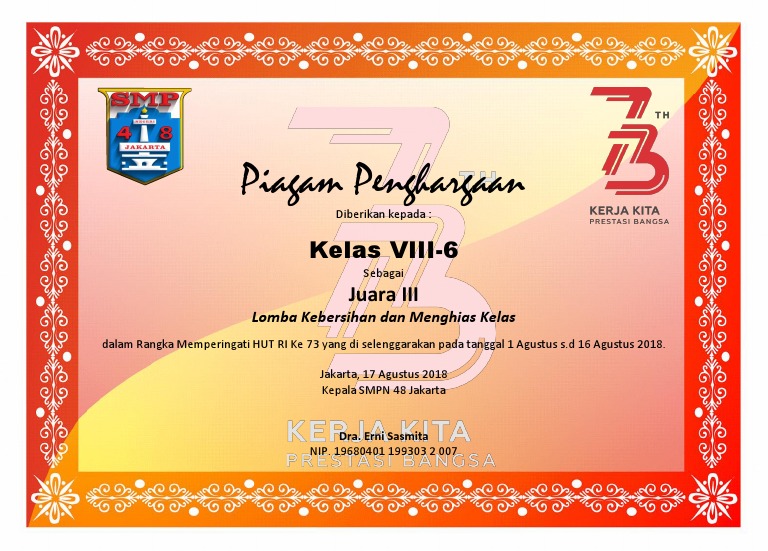 Contoh undangan hut ri ke 73 pada tanggal 17 agustus 2018 hari kemerdekaan. Contoh Piagam Penghargaan Acara Lomba 17 Agustus Berita Hari Ini Djawanews Com. Juara 1 satu lomba dalam rangka.